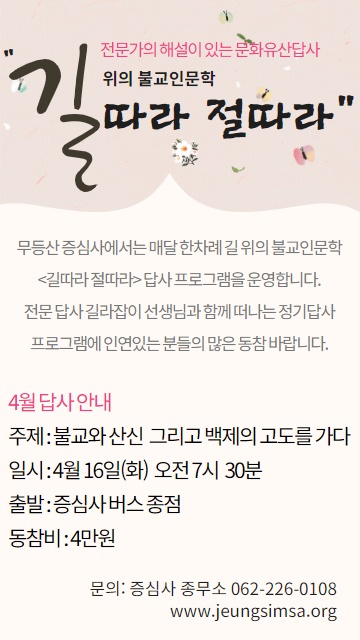 4월 답사 - 불교와 산신 그리고 백제의 고도 공주를 가다 페이지 정보 작성자증심사 댓글 0건 조회 1,382회 작성일 19-04-02 17:43 본문 . 목록 답변 글쓰기 이전글4월 답사 후기 19.04.22 다음글3월 답사 후기 19.03.31 댓글 0 댓글목록 등록된 댓글이 없습니다.