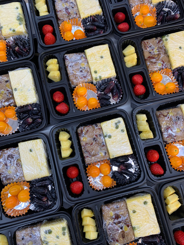 4월 3일(금) 오전 9시, (사)자비신행회에서 코로나19 방역 의료진을 위한 간식도시락 2차 프로젝트를 진행했습니다. 메뉴는 약밥, 호박떡, 금귤, 딸기, 파인애플, 가지포도로 구성했습니다.