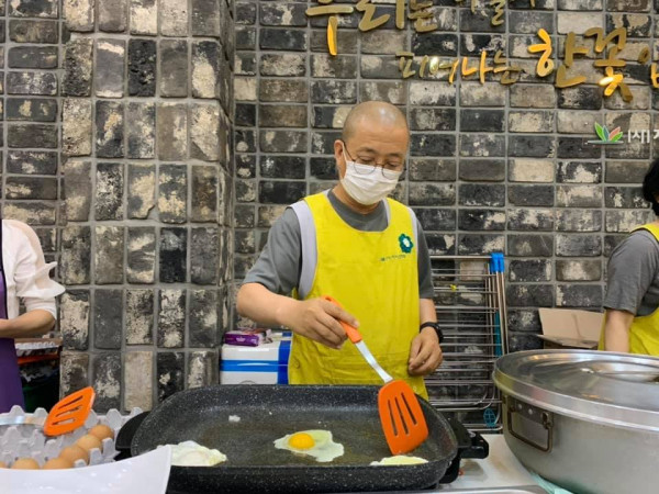 이번에 청년식당을 다시 오픈 할 때, 증심사에서 봉사자를 모집했습니다. 다행히 증심사에서 봉사를 많이 해주시는 분들이 참여해주었습니다.