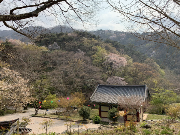 산벚꽃이 만개한 산사